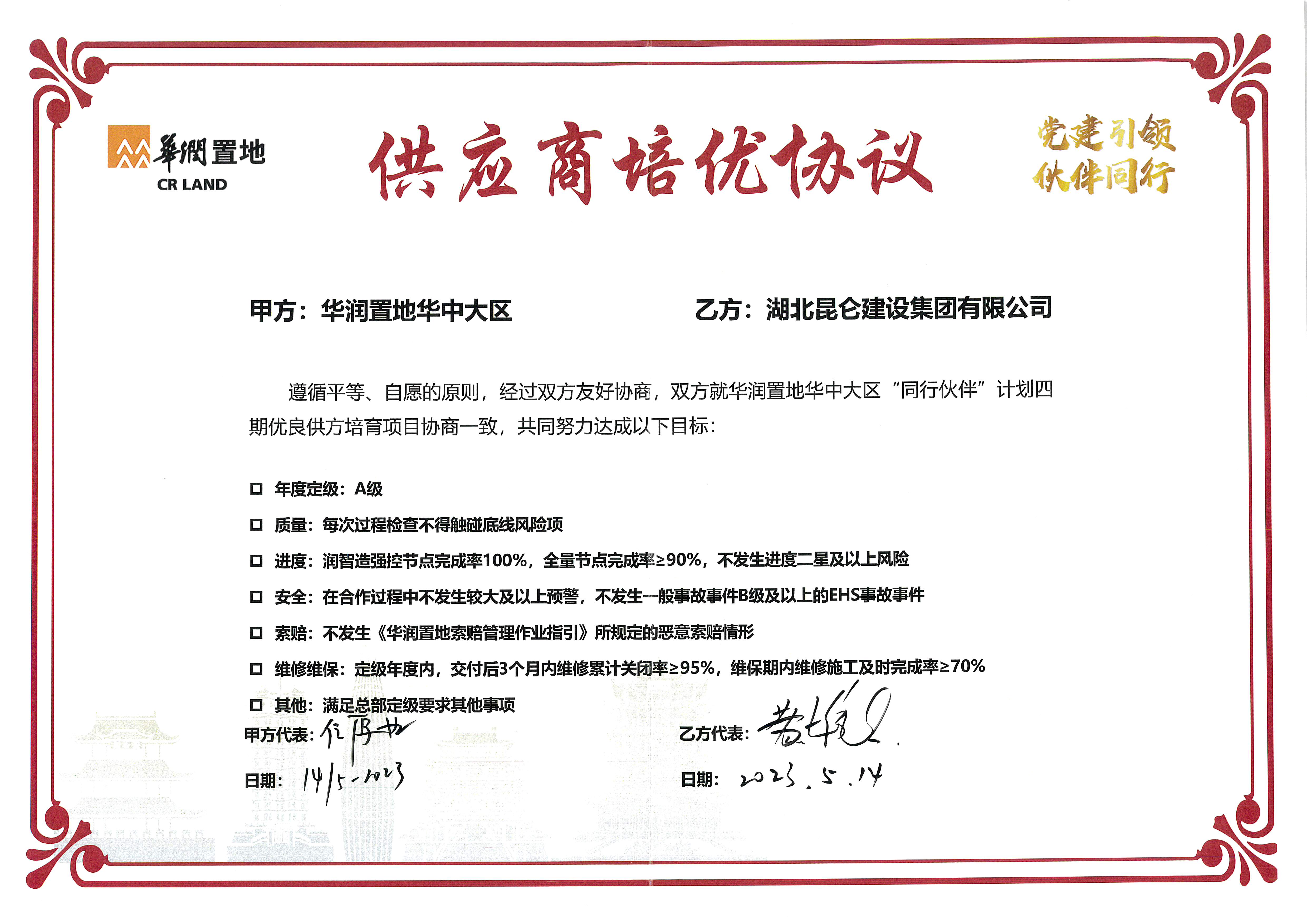 • 2023年5月14日簽署華潤置地華中大區(供應商...